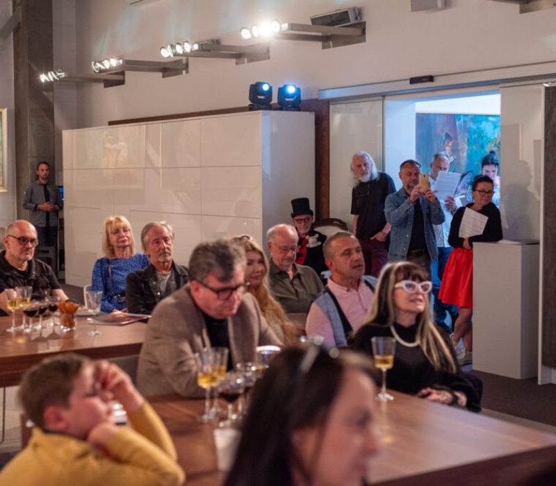 The exhibition is an invitation to a journey behind the scenes of theater stages to explore the secrets of life going on there. It includes 22 oil paintings, 8 drawings and 4 graphics.